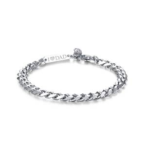 Bracciale catena grumetta diamantata grande in acciaio 316L e barretta con incisione.