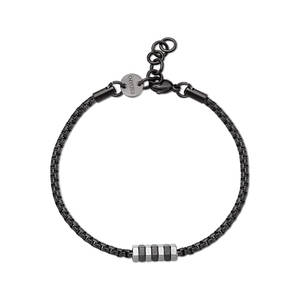 Bracciale catena in acciaio 316L e finitura pvd colore nero con dettagli centrali in acciaio e in finitura pvd colore nero.