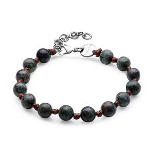 Bracciale in acciaio 316L con cordino cerato marrone e sfere in turchese africano.
