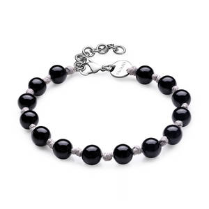 Bracciale in acciaio 316L con cordino cerato grigio e sfere in agata nera.