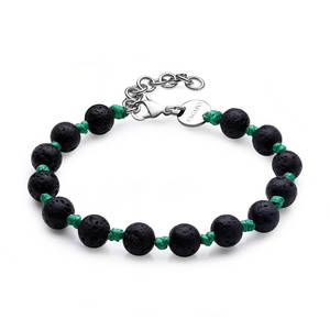 Bracciale in acciaio 316L con cordino cerato verde militare e sfere in lava stone.