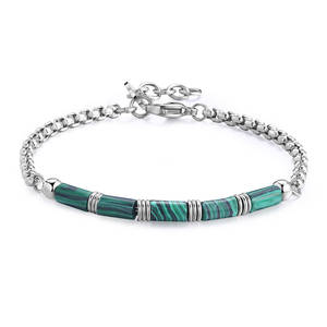 Bracciale in acciaio 316L con catena e centrale elementi in malachite e acciaio 316L.