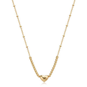 Collana girocollo in acciaio 316L, finitura pvd oro 14K con sfere e centrale a cuore.