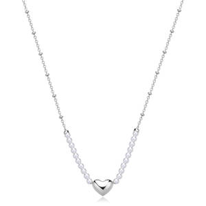 Collana girocollo in acciaio 316L con centrale a cuore e perle di conchiglia.