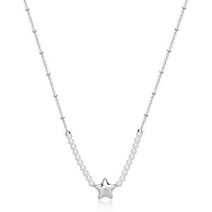 Collana girocollo in acciaio 316L con centrale a stella e perle di conchiglia.