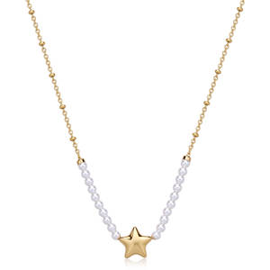 Collana girocollo in acciaio 316L e finitura pvd oro 14K con centrale a stella e perle di conchiglia.