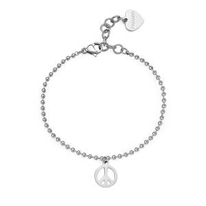 Bracciale a sfere piccole in acciaio 316L con pendente a forma di simbolo della pace.
