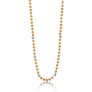 Collana in acciaio 316L lucido e satinato e sfere in vetro giallo.