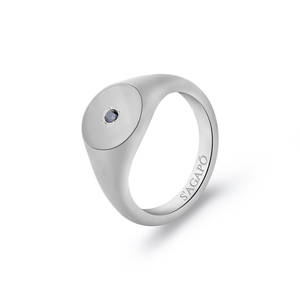 Anello sigillo in acciaio 316L lucido e satinato con cubic zirconia nero.