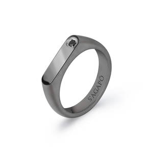 Anello in acciaio 316L lucido e satinato, finitura pvd colore rutenio e cubic zirconia nero.