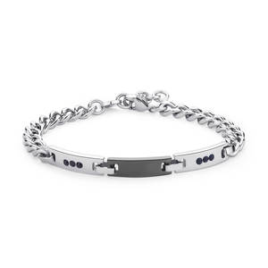 Bracciale catena in acciaio 316L e centrale con cristalli neri e finitura pvd colore rutenio.