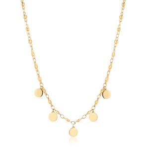 Collana girocollo in acciaio 316L e finitura pvd oro 14K con pendenti a forma di cerchio.