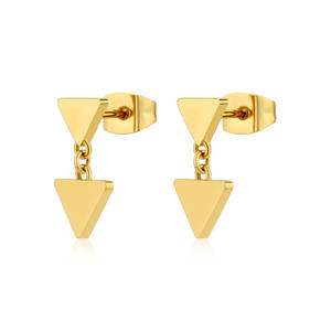 Orecchini in acciaio 316L e finitura pvd oro 14K con pendenti a forma di triangolo.