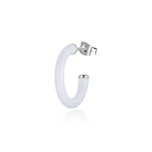 Orecchino singolo a cerchio in acciaio 316L e smalto bianco.