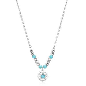 Collana girocollo in acciaio 316L con elementi in turchese ricostruito e pendente evil eye.