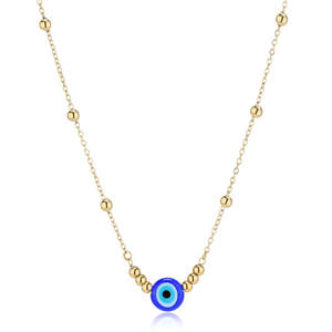 Collana girocollo in acciaio 316L e finitura pvd oro 14K con occhio di Nazar centrale.