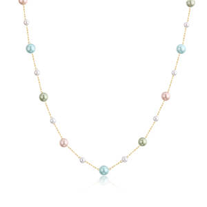 Collana girocollo in acciaio 316L con finitura in pvd oro 14K e perle di conchiglia colorate.