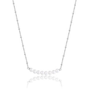 Collana girocollo in acciaio 316L con perle di conchiglia centrali.