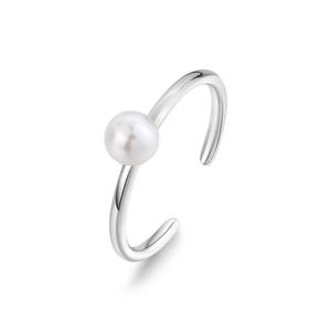 Anello regolabile in acciaio 316L con perla di conchiglia centrale.