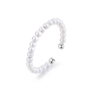Anello regolabile in acciaio 316L con perle di conchiglia.