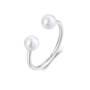 Anello regolabile in acciaio 316L con perle di conchiglia.
