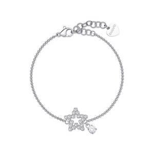 Bracciale in acciaio 316L con cristallo pendente e centrale a forma di stella con cristalli.