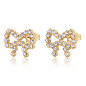 Orecchini a lobo a forma di fiocco in acciaio 316L, finitura pvd oro 14K e cristalli.