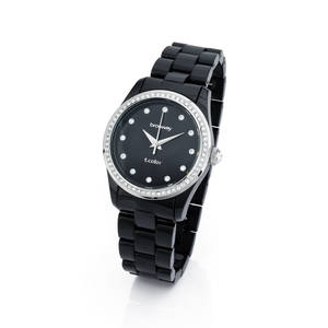 Orologio solo tempo in acciaio 304 con quadrante copper nero e cristalli, con cinturino in policarbonato nero.