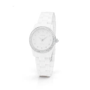 Orologio solo tempo in acciaio 304 con quadrante copper bianco e cristalli, con cinturino in policarbonato bianco.