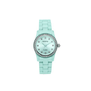Orologio solo tempo in acciaio 304 con quadrante copper celeste e cristalli, con cinturino in policarbonato celeste.